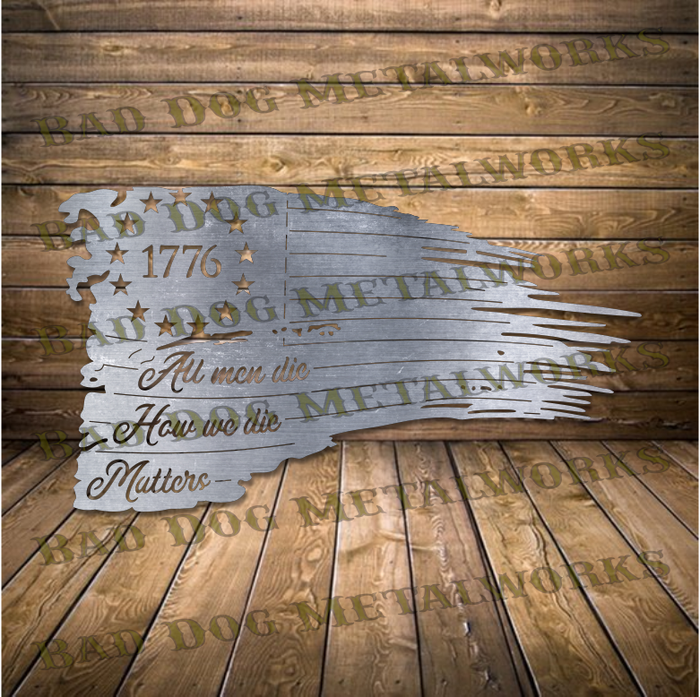 - 24" (w) x 13.4" (h) All Men Die How We Die Matters Tattered Flag design