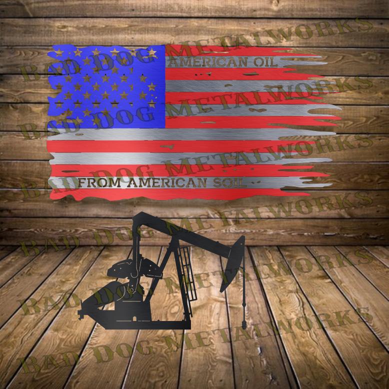 American Oil from American Soil Tattered Flag - Dxf and Svg