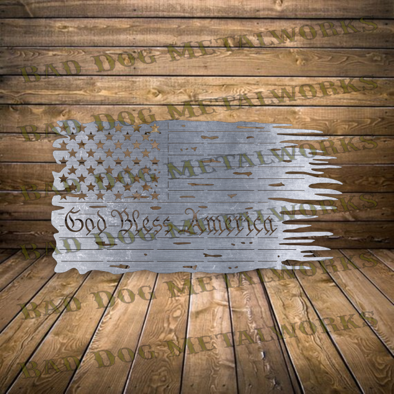 - 30" (w) x 15.9" (h) God Bless America Tattered Flag design