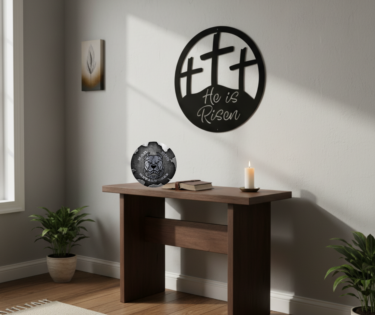 Celebrate the true meaning of Easter and faith year-round with this handcrafted He Is Risen metal sign from Bad Dog Metalworks. Perfect for your entryway, living room, or prayer space, this piece makes a meaningful addition to any Christian home or a thoughtful gift for Easter, baptisms, and housewarmings.