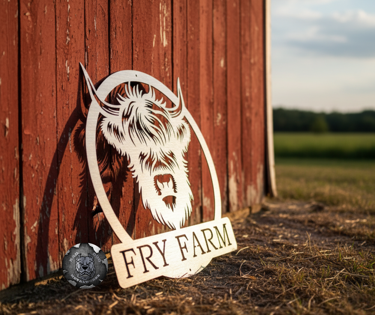 Make your homestead stand out with this custom Highland Cow Head Monogram from Bad Dog Metalworks.