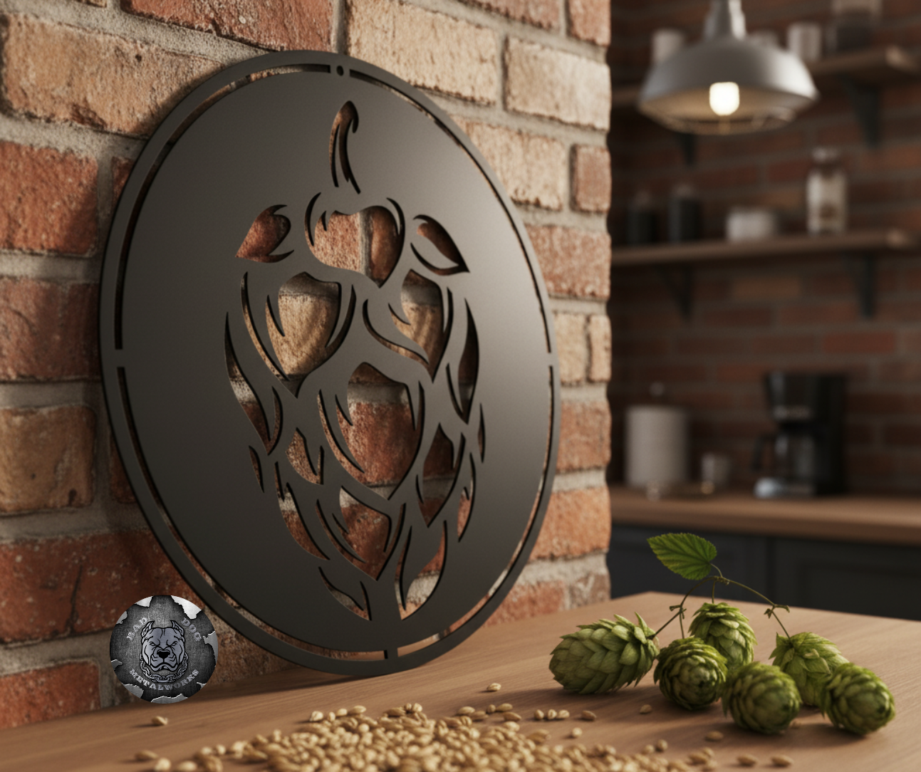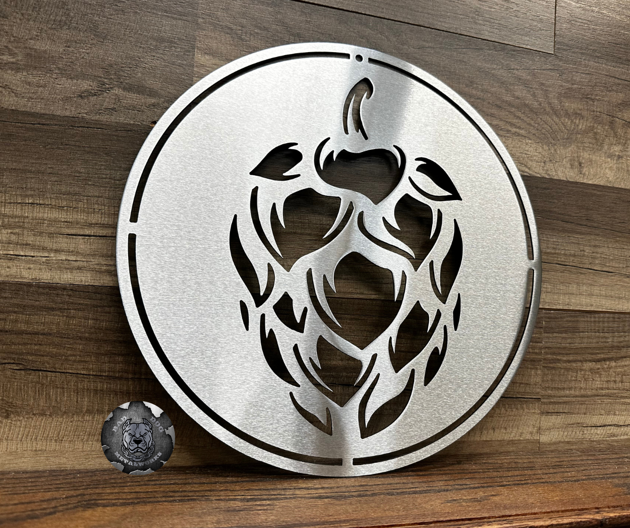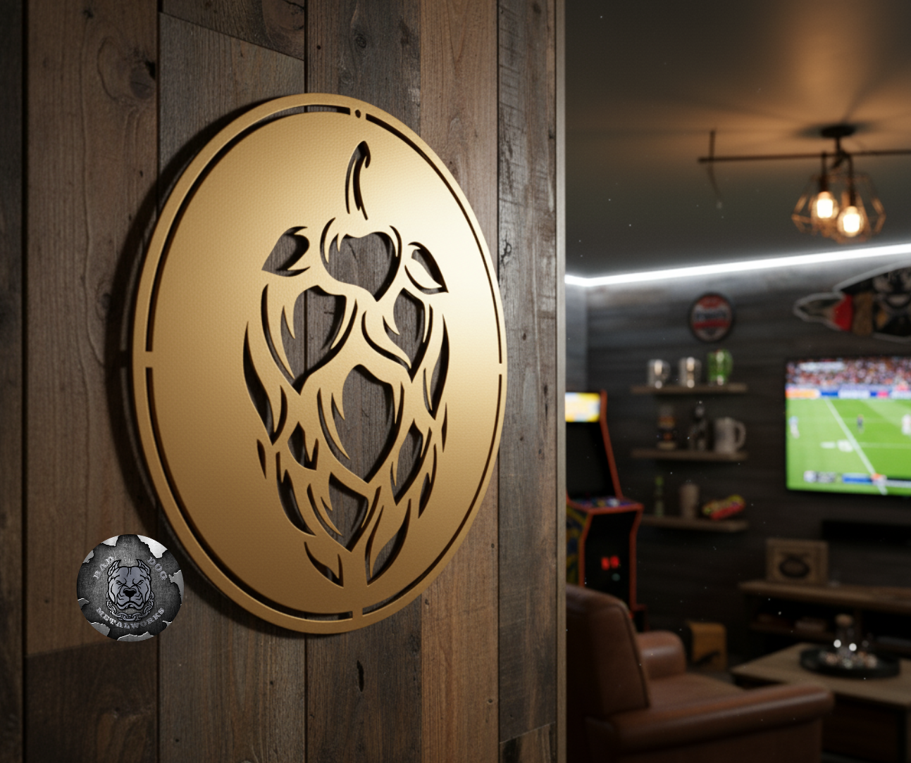 Raise a glass, hop lovers — this one’s for you! This Hops Metal Sign from Bad Dog Metalworks is a sleek salute to all things craft beer. Perfect for your home bar, man cave, brewery, or backyard tap zone, this design celebrates the mighty hop cone in clean, modern metal form.