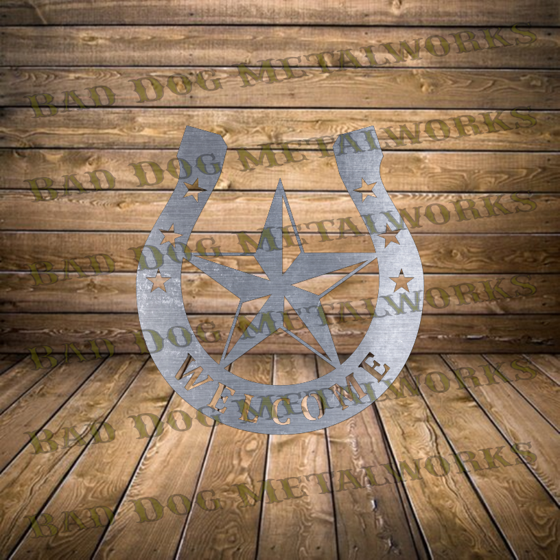 - 16.7" (w) x 18" (h) Welcome Horseshoe design