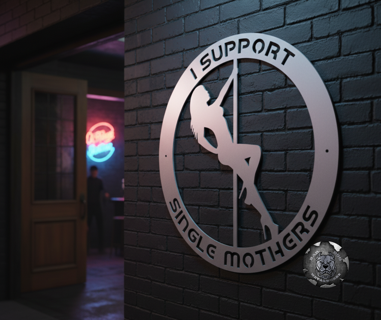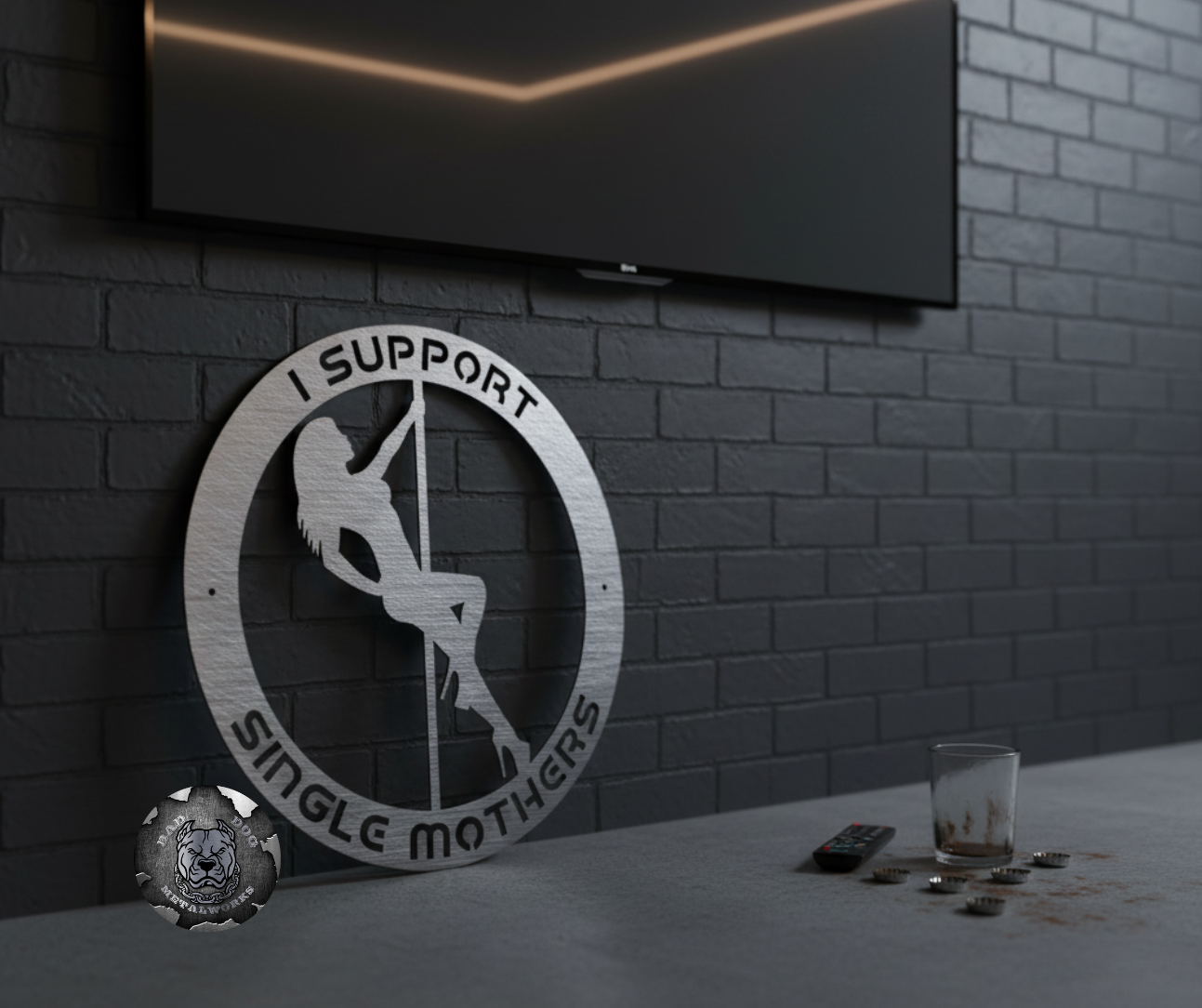 Finally, a sign that says what your wallet’s been trying to tell everyone all along. The “I Support Single Mothers” sign from Bad Dog Metalworks is a classy (ish) nod to your generous spirit and impeccable sense of humor. Perfect for the man cave, garage, or home bar — basically anywhere that smells faintly of bourbon, bad decisions, and cologne named Midnight Thunder.