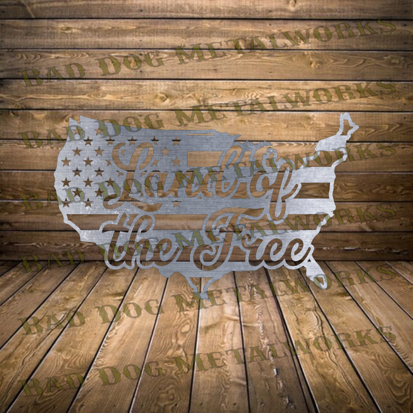 - 24" (w) x 14.8" (h) Land of the Free USA Outline design