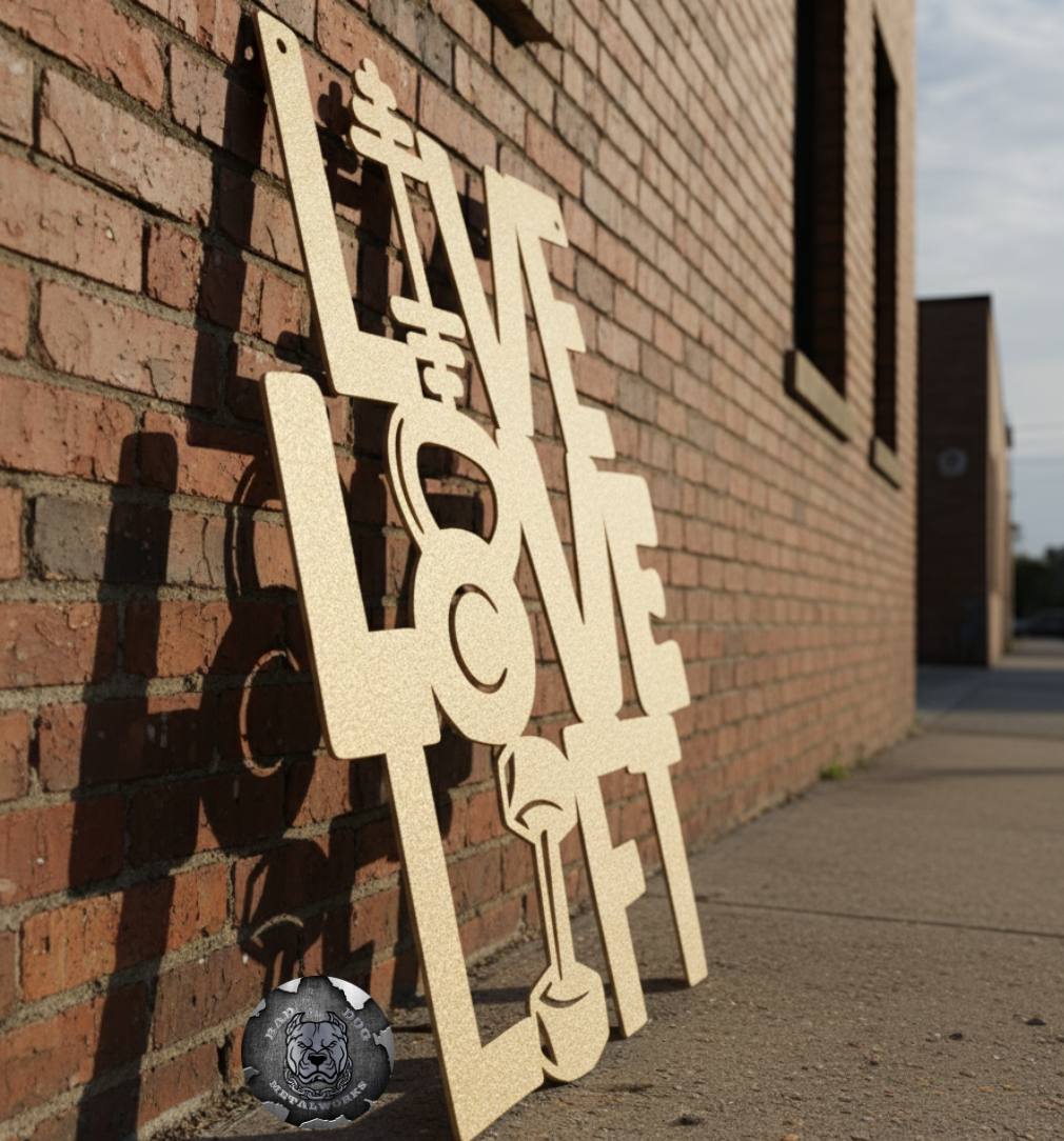 From the squat rack to your six pack, this Live, Love, Lift sign is here to fuel your fitness fire and flex some serious decor muscles.