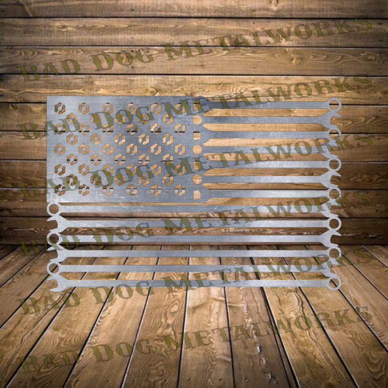 - 24" (w) x 15.95" (h) Mechanic’s Flag 13 Wrenches design