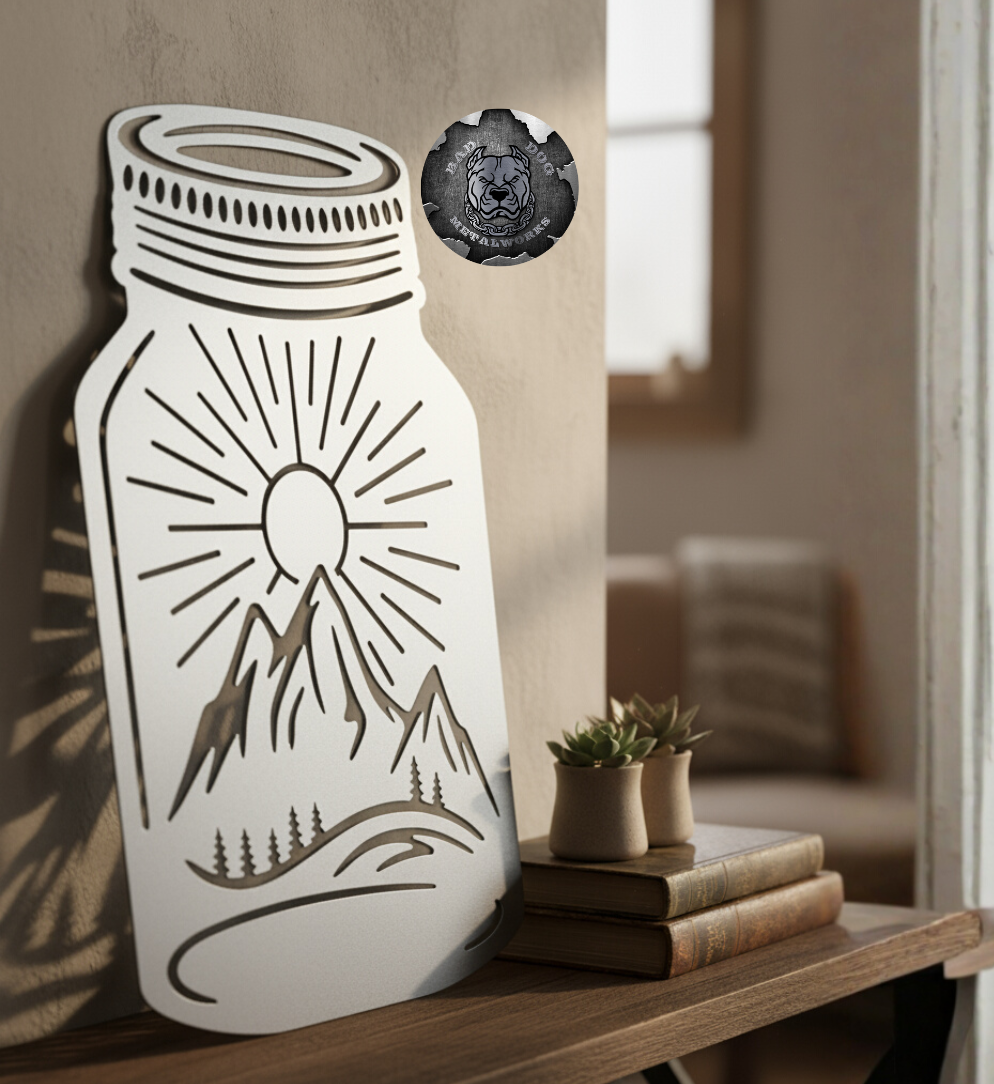 A reminder to collect memories, not things! Capture the spirit of open skies and mountain mornings with this Mountain Scene Mason Jar sign from Bad Dog Metalworks. Perfect for kitchens, living rooms, or cabin retreats, this piece is a reminder to slow down, breathe deep, and bottle up the beauty of the outdoors — one adventure at a time.