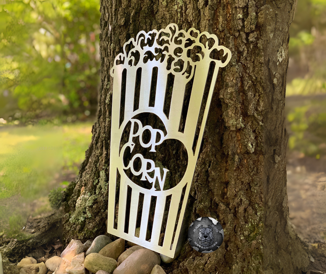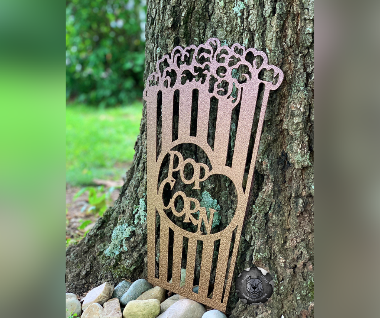 A nod to vintage home theater decor, our movie theater-style popcorn metal sign is calorie-free and won't get butter on your fingers.