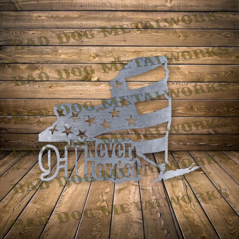 - 15" (w) x 11.7" (h) Never Forget 9/11 NY American Flag design