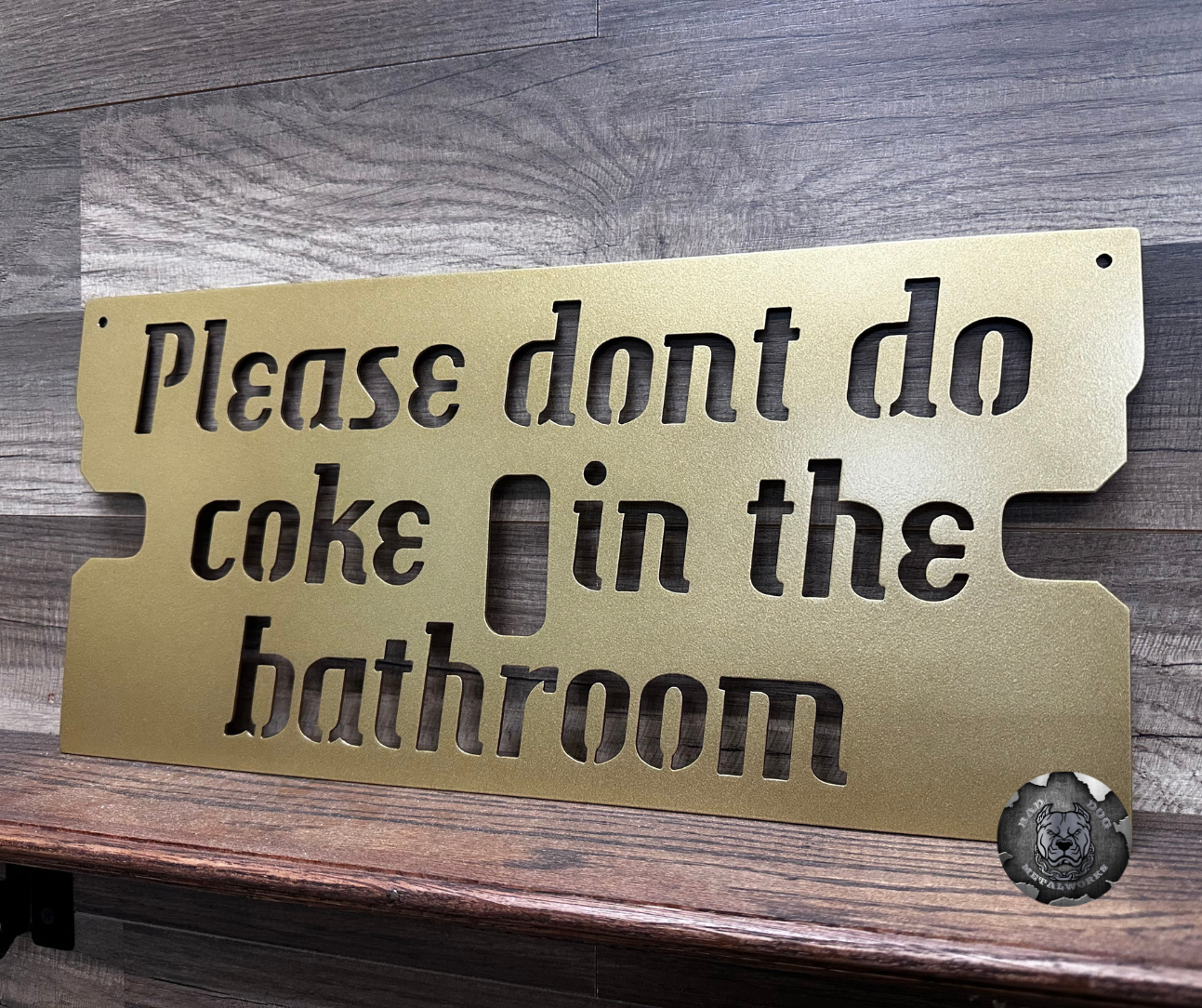 Do you struggle with houseguests snorting blow in your guest bathroom? Probably not, but this Bad Dog Metalworks original will most definitely be the topic of discussion amongst every person that visits your throne.