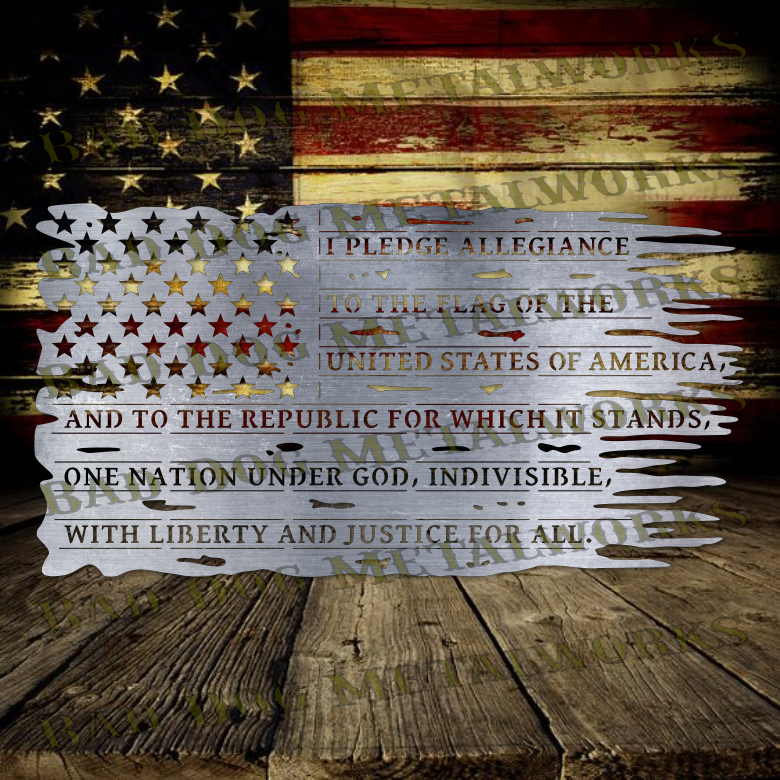 - 30" (w) x 15.7" (h) Pledge of Allegiance Tattered Flag design