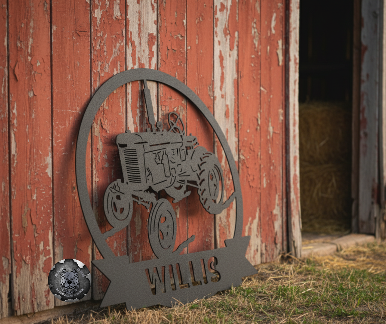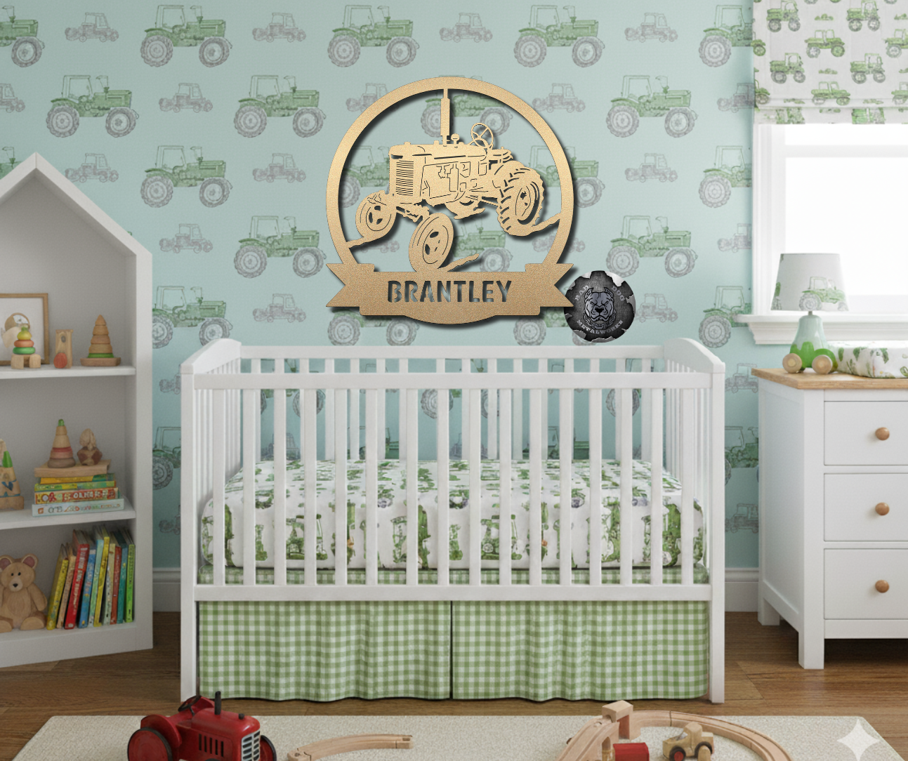 Do you know someone who counts tractors instead of sheep? From soybeans to sunsets, this sign honors where the real work happens—with boots in the dirt and pride on display. Our personalized Tractor Monogram is ready to roll straight into your barn, porch, pasture fence, or baby nursery.
