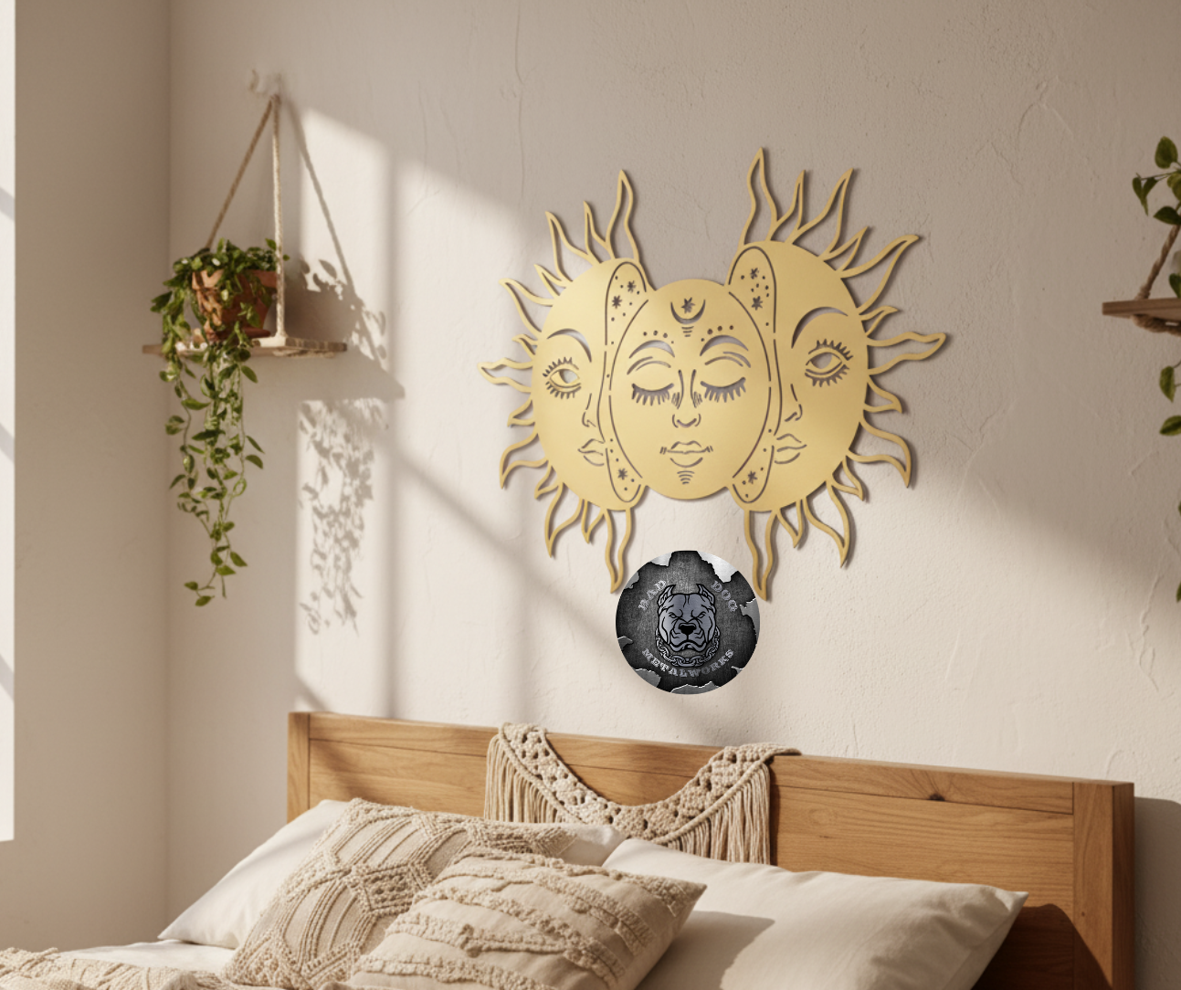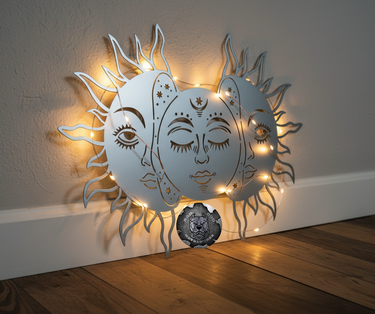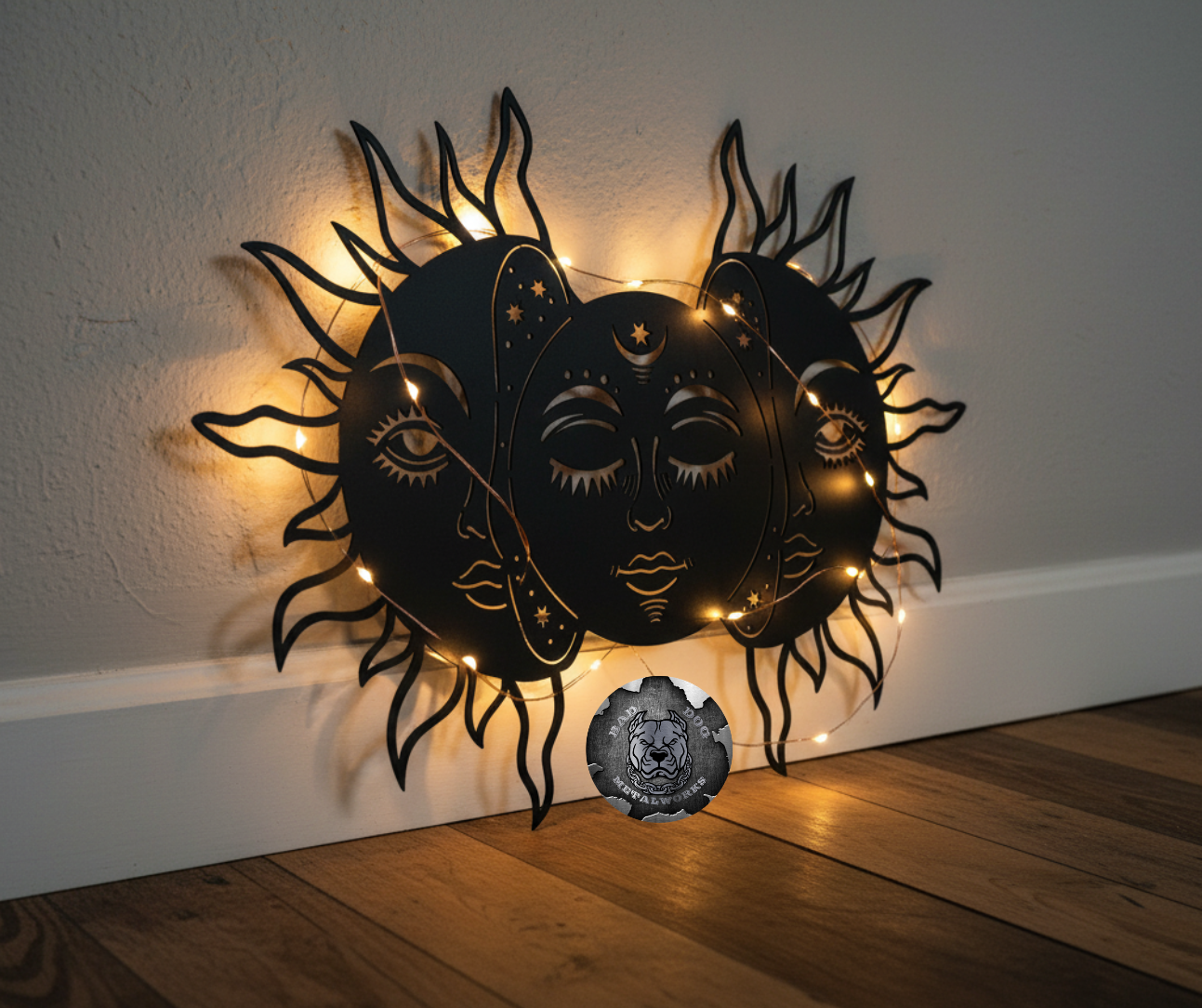 Channel the power of the moon and the warmth of the sun with this Triple Moon Celestial Goddess metal sign from Bad Dog Metalworks. This piece beautifully represents the waxing, full, and waning moon phases — each face symbolizing the divine balance of creation, intuition, and renewal.