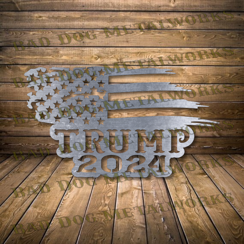 - 18.5” (w) x 10.5” (h) Trump 2024 Tattered Flag design